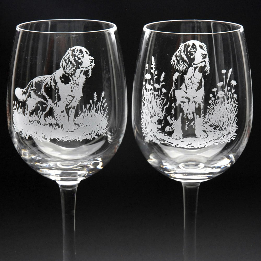 This Springer Spaniel Crystal Wine Glass is hand-etched with a stunning design of a Springer Spaniel, making it the perfect gift for Springer Spaniel lovers.