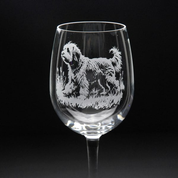 This Tibetan Terrier Crystal Wine Glass is hand-etched with a stunning design of a Tibetan Terrier, making it the perfect gift for Tibetan Terrier lovers.