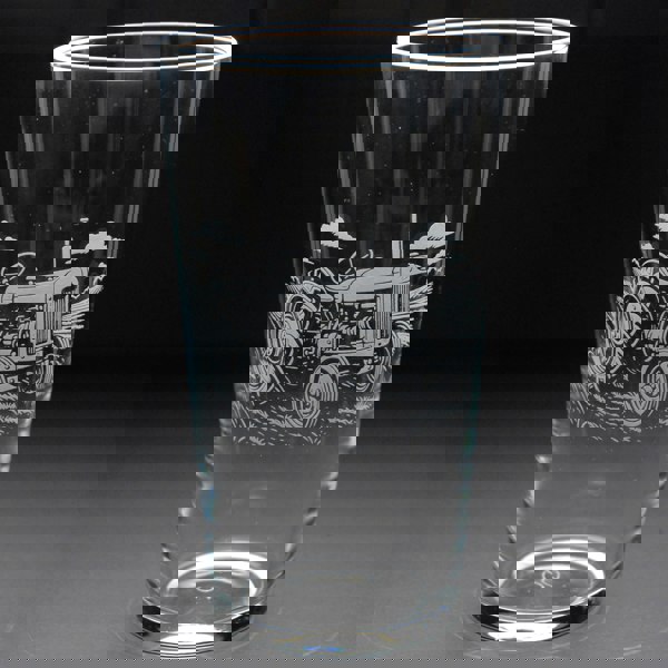 This Tractor Glass is hand-etched with a stunning design of a Tractor, making it the perfect gift for Tractor lovers.
