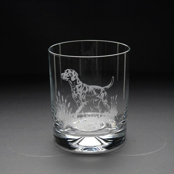 This Weimaraner Whiskey Tumbler Glass is hand-etched with a stunning design of a Weimaraner, making it the perfect gift for Weimaraner lovers.