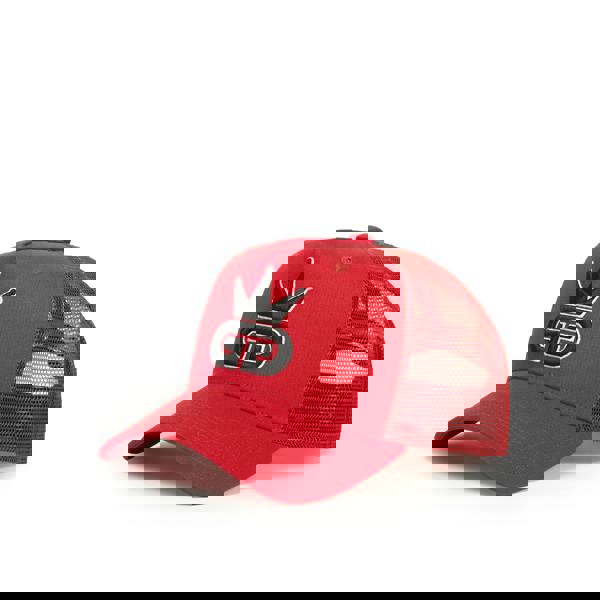 Beautiful 100% red shauku mesh hat with polyester side and rear panelling with an all black logo and white trim God Given Talent logo. Retro style snap back adjuster.