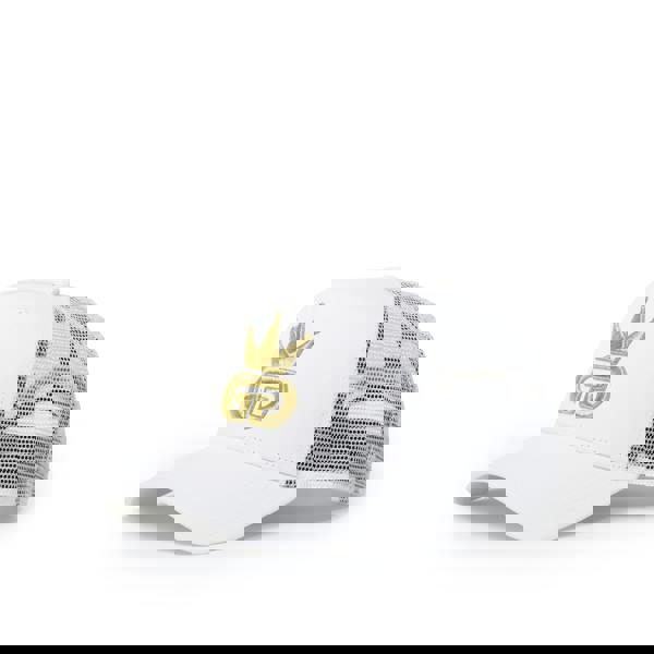 Beautiful 100% white cotton mesh hat with polyester side and rear panelling with an all gold God Given Talent logo. Retro style snap back adjuster.