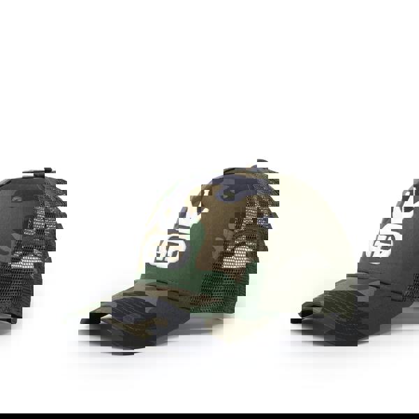 Beautiful 100% camo green mesh hat with polyester side and rear panelling with ann all white God Given Talent logo. Retro style snap back adjuster.