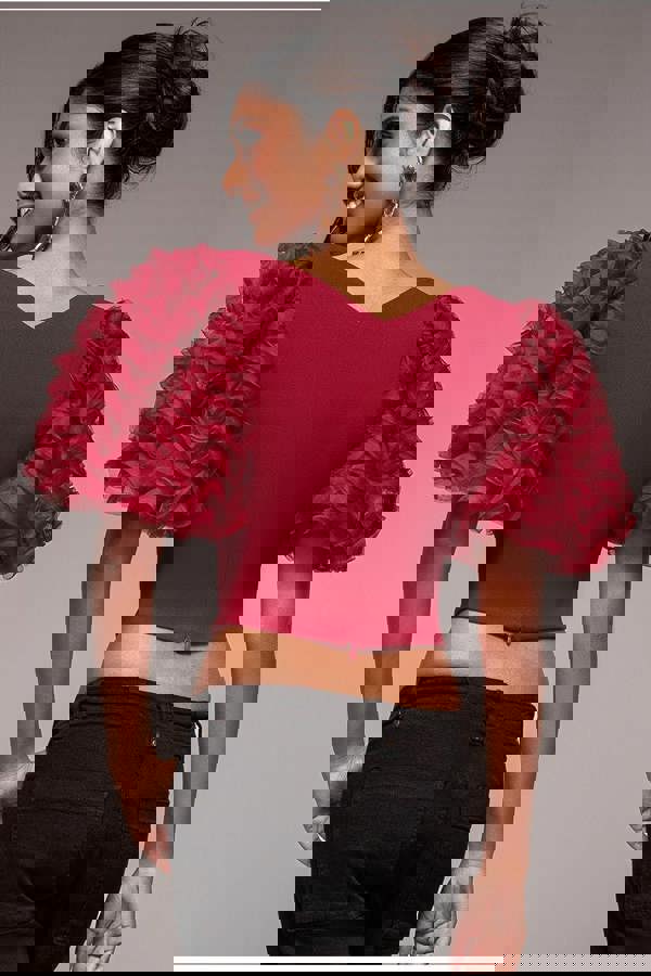 The Goddiva 3D Textured Sleeve Scuba Corset Top is designed with a square neckline and statement puff sleeves that create the ultimate feminine silhouette.