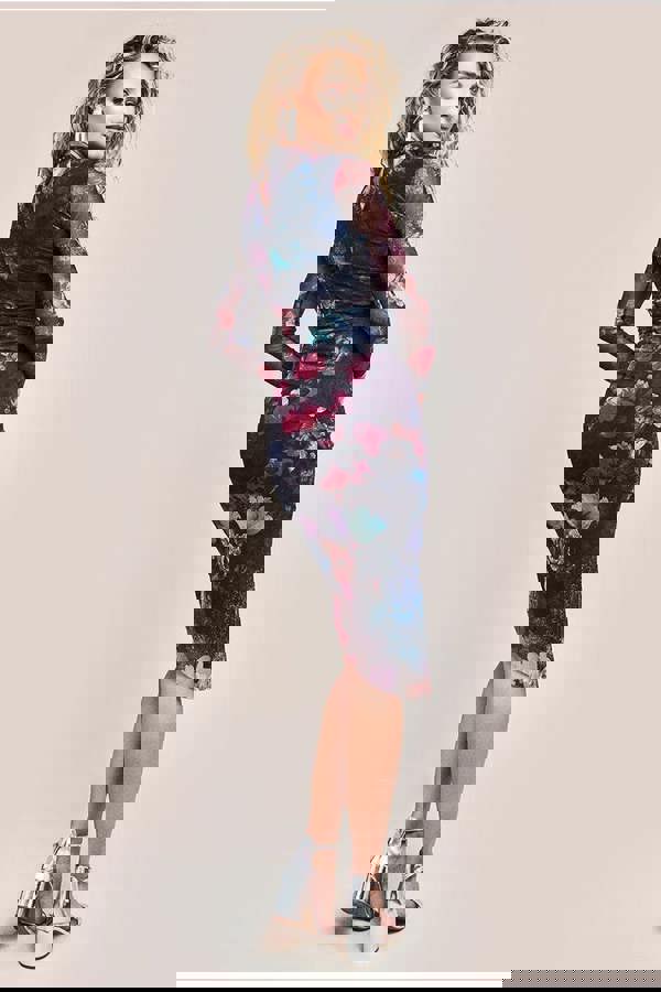 But what truly sets it apart is its sheer mesh floral print, adding a hint of romance and femininity to its bold silhouette.