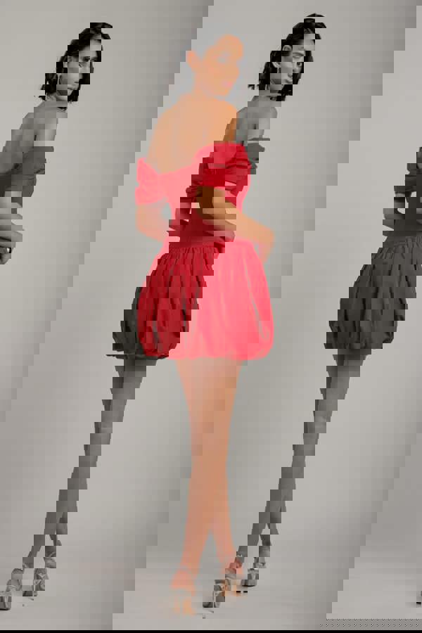 Radiating in rich crimson hues, this limited edition mini dress brings a luxe yet accessible feel, perfect for date nights, special events, or glamorous nights out.