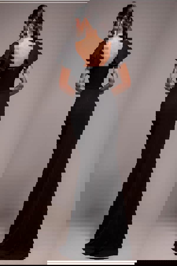 Own the spotlight in the Goddiva Cape Sleeve Detail Front Tie Maxi Dress in Black.