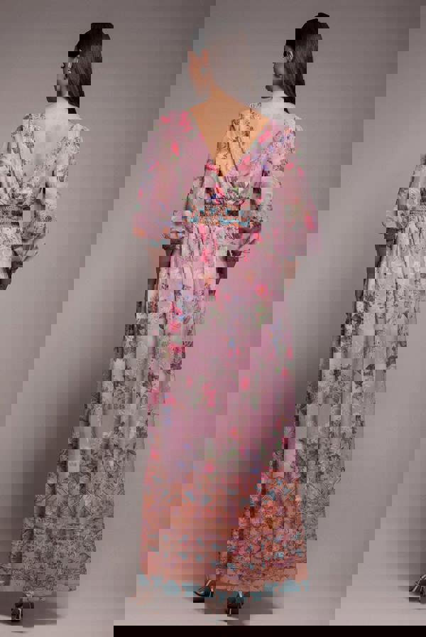 Wrap yourself in effortless elegance with our Chiffon Wrap Border Floral Print Maxi Dress.