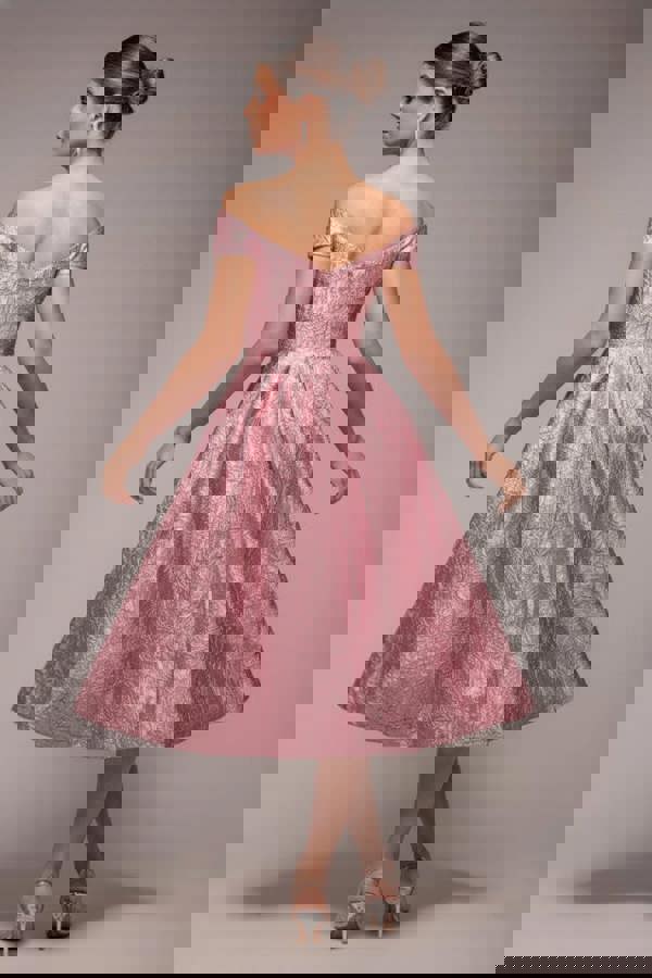 This blush pink dress is an exquisite choice for anyone looking to embrace the season's most refined styles with a playful yet sophisticated flair.