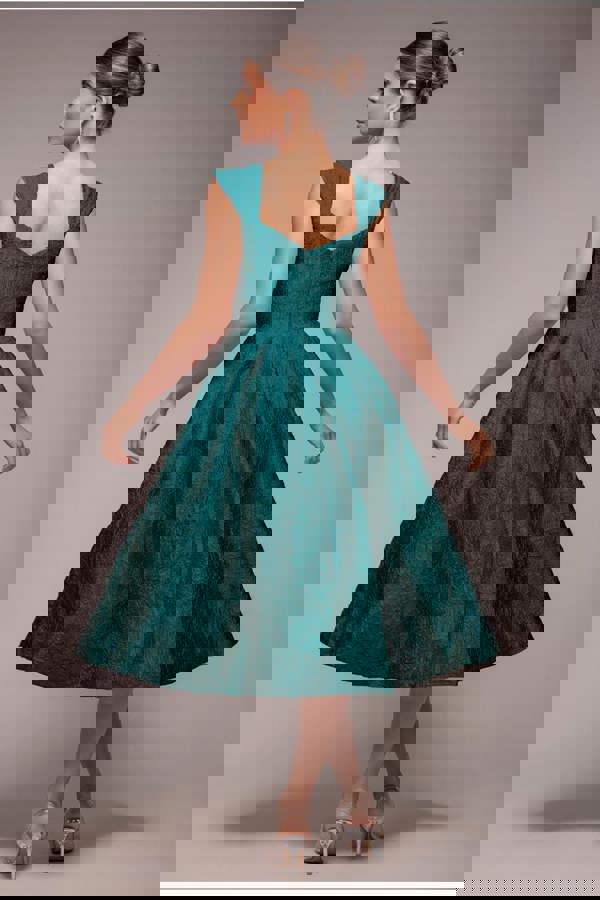 Perfect for wedding guests, garden parties, or a whimsical evening out, this dress embraces a romantic, feminine silhouette.