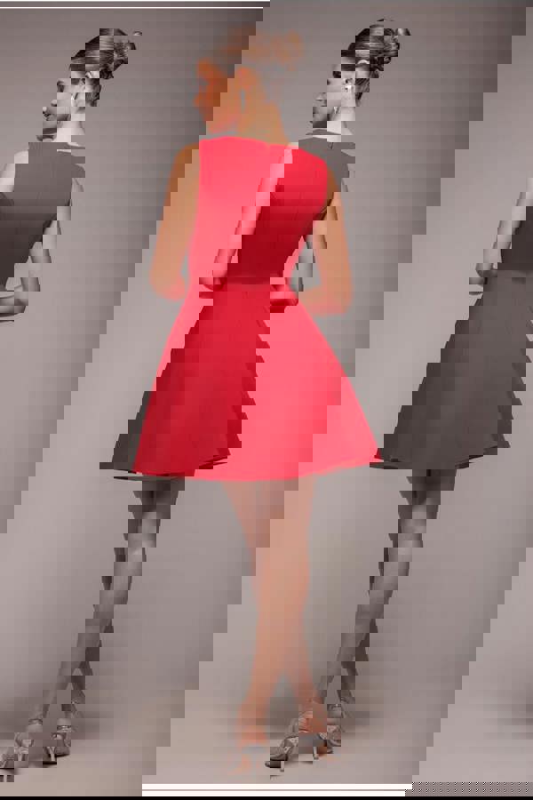 The Goddiva Diamante Embellished Neck A-Line Mini Dress in Red is the epitome of glamour and sophistication.