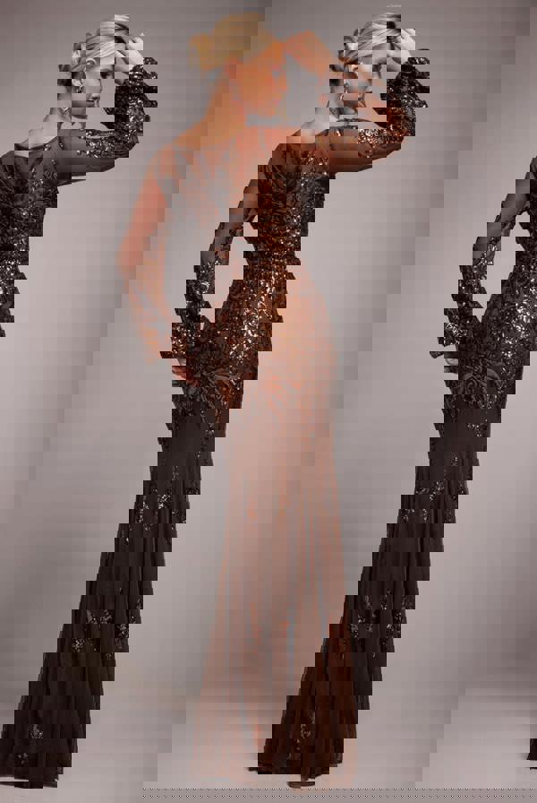 Limited Edition and designed for the fashion-forward, this bronze sequin maxi dress is a chic essential for your wardrobe, delivering premium style at an accessible price.