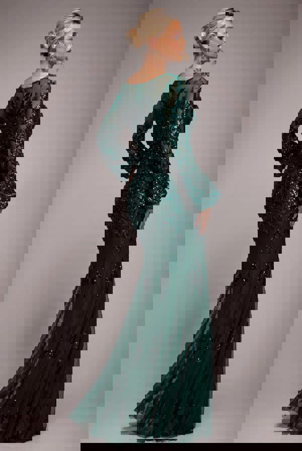 Glamorous evenings call for the Goddiva Embellished Sequin Bishop Sleeve Maxi Dress in Emerald Green.