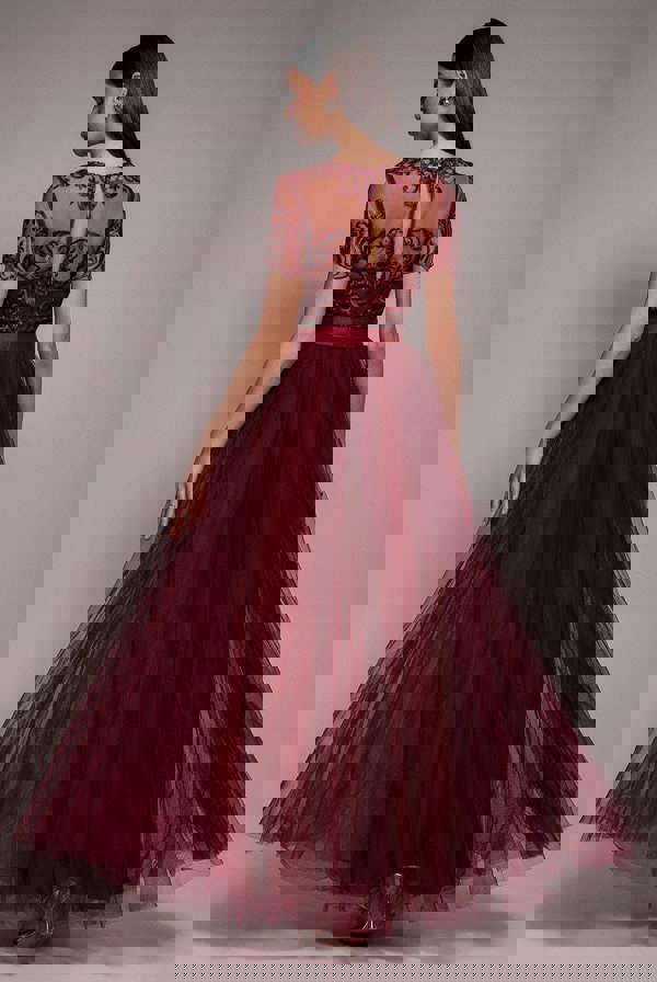 Envelop yourself in an aura of romance and princess-like allure with the accentuated cut and intricate embroidery pattern of this dress.