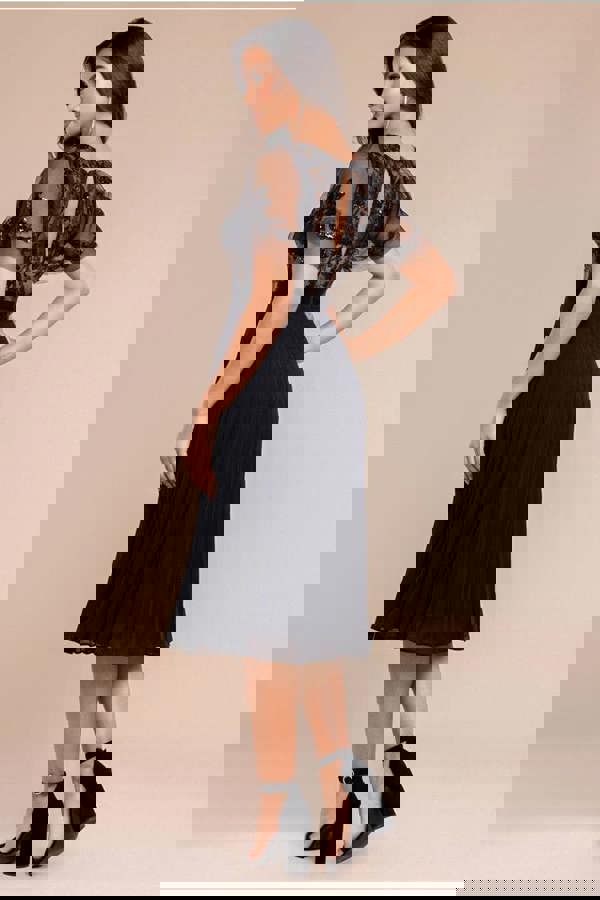 This stunning midi dress is the perfect choice for any special occasion, from weddings to semi-formal events.