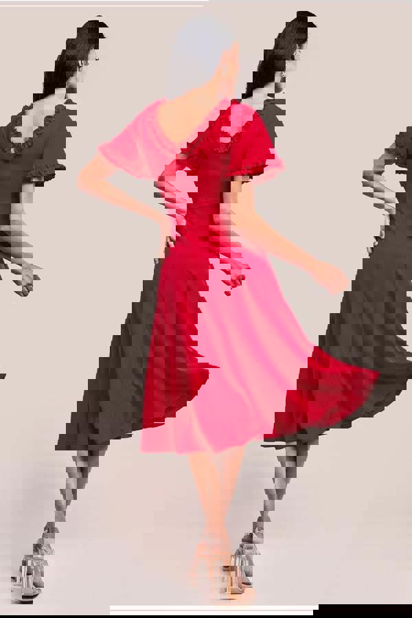 Crafted with meticulous attention to detail, this red midi dress strikes the perfect balance between elegance and playfulness.