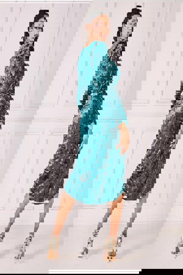 The Goddiva Flared Hem Ice Velvet Midi Dress, the definition of elegance and sophistication, designed to make you shine on any occasion! This stunning emerald midi dress is the perfect choice for a party, date night, Christmas celebration, NYE extravaganza, or as a wedding guest.