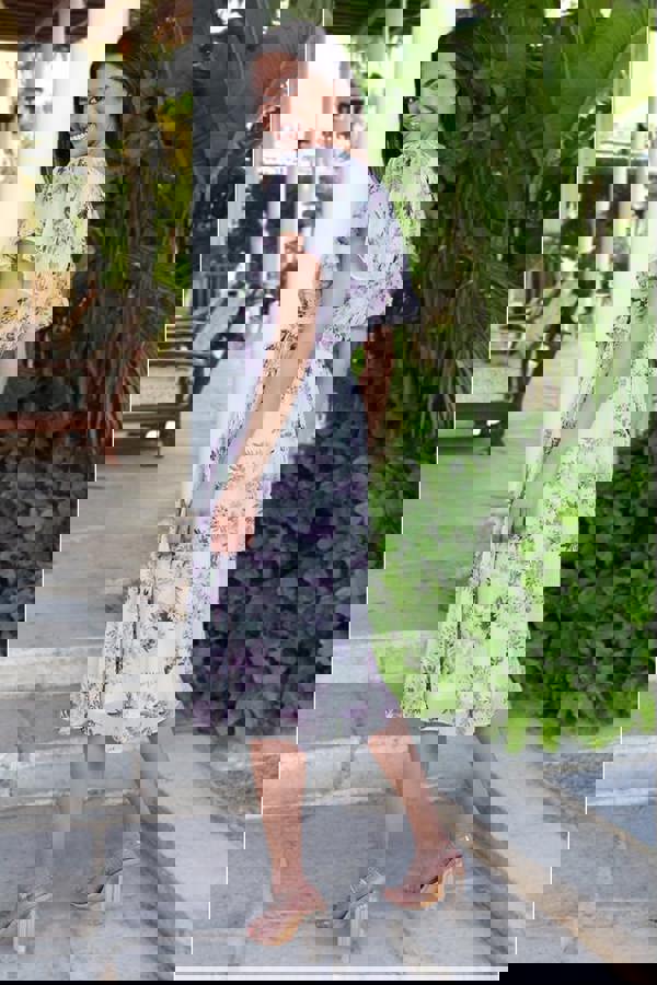 The all-over floral print brings a fresh, vibrant feel, perfect for embracing the beauty of the season.