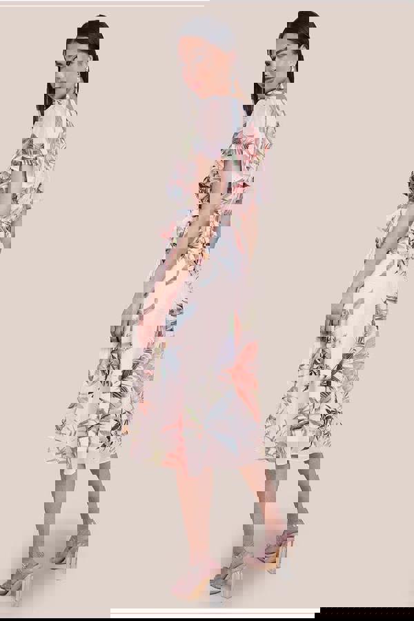 The all-over floral print brings a fresh, vibrant feel, perfect for embracing the beauty of the season.