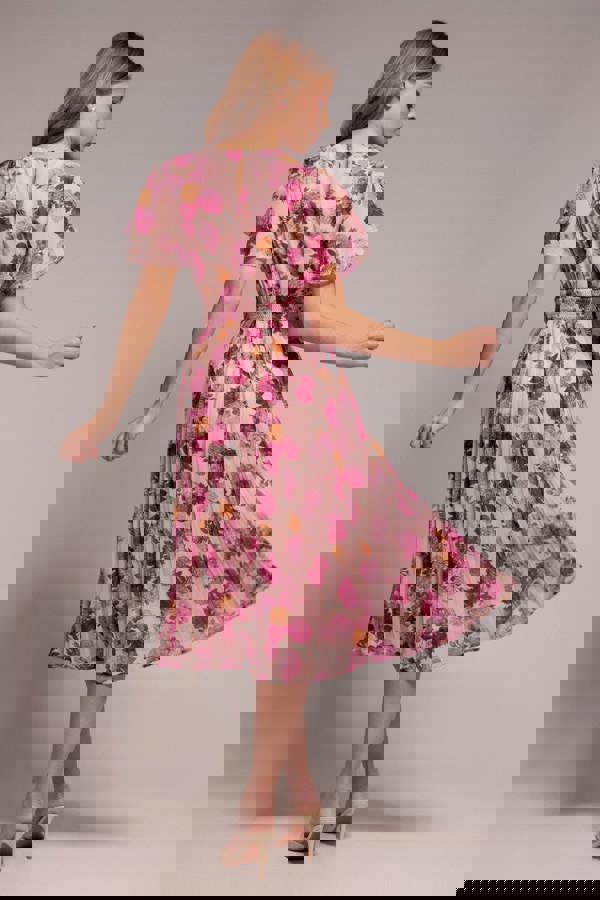 Pretty in pink never looked so good! The Goddiva Flutter Sleeve Pleated Skirt Floral Midi Dress in Pink is a dreamy combination of romance and effortless elegance.
