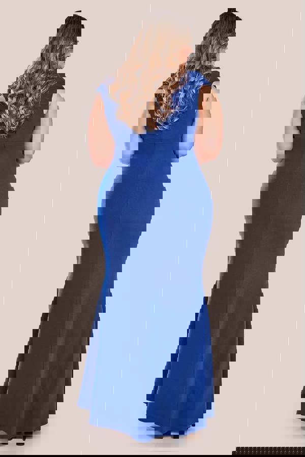 Get the look this season in this phenomenal blue scuba crepe occasion maxi dress.