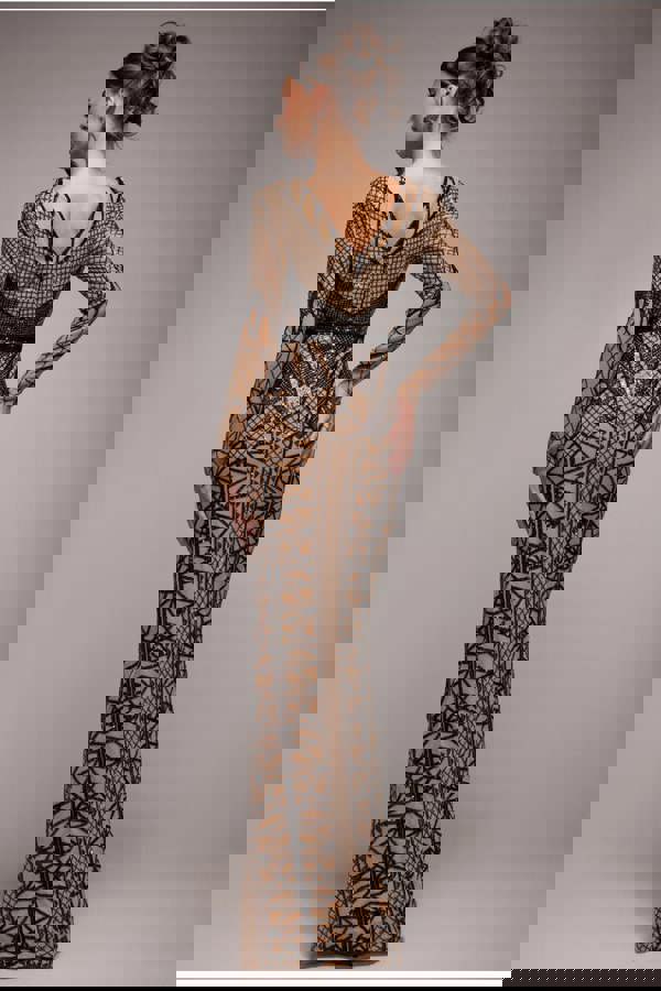 A show stopping masterpiece, is what we call the new Geometric Sequin Plunge Maxi Dress from Goddiva.