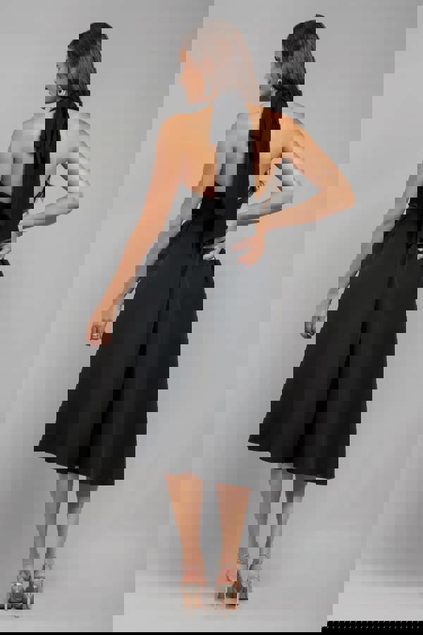 Serving sleek, black-tie energy with a modern twist, the Goddiva Halter Neck Pleated A-Line Midaxi Dress in black is the ultimate go-to for trend-savvy dressers.