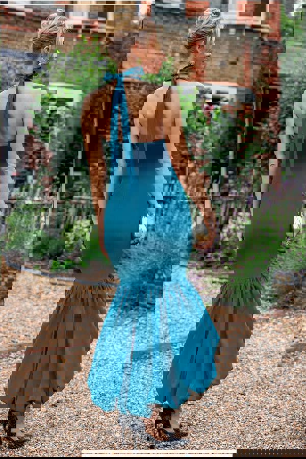 Emerald green glamour meets contemporary allure in this Limited Edition halter neck puff hem mermaid midaxi dress.