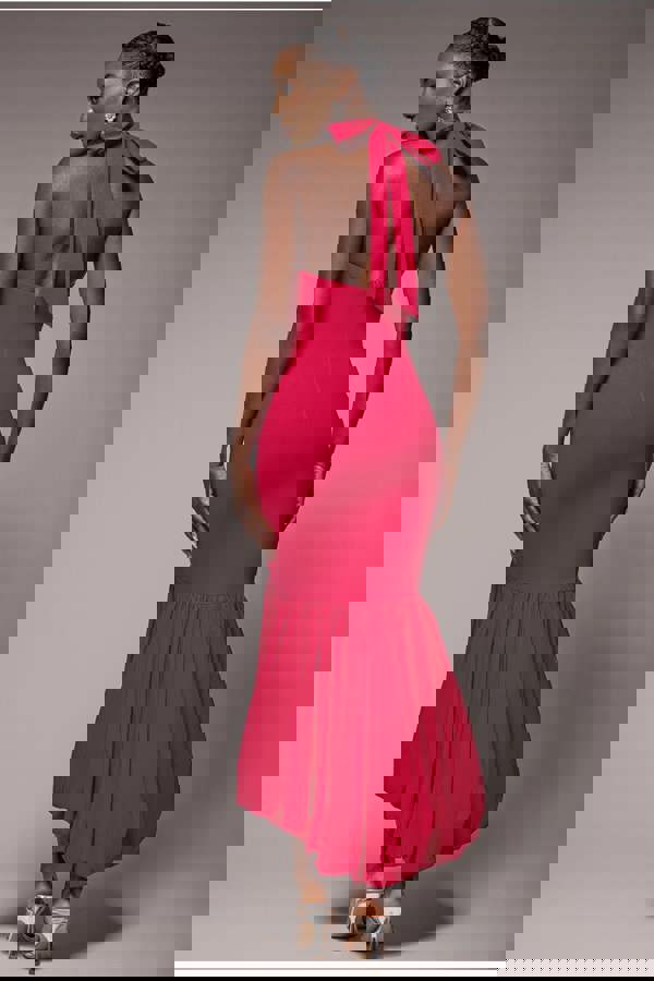 The rich red hue drapes beautifully, while the halter neckline and open back bring an alluring, feminine energy perfect for date nights, glamorous parties and unforgettable special occasions.