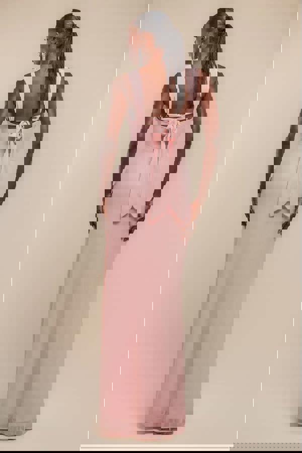 Blush pink is having a moment, and the Halter Neck Thigh Split Chiffon Maxi Dress is the ultimate way to wear it.