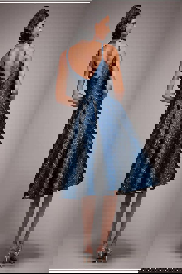 The A-line skater style skirt flows elegantly, perfect for nights out, cocktail parties, and special occasions where a touch of luxury is a must.