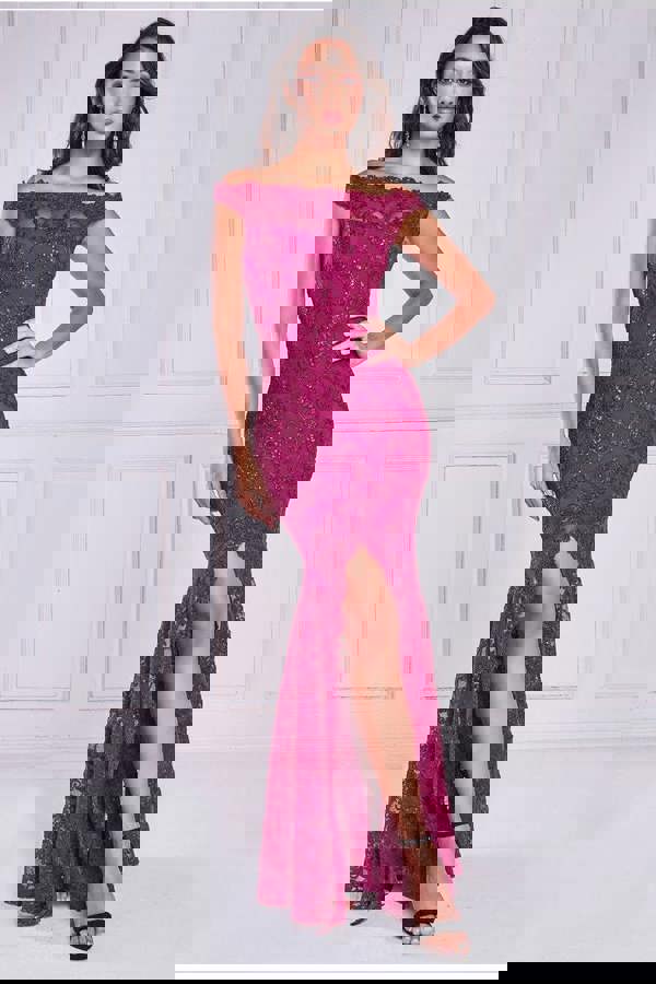 This burgundy off-the-shoulder masterpiece seamlessly combines elegance and allure, making it a must-have for your most special occasions.