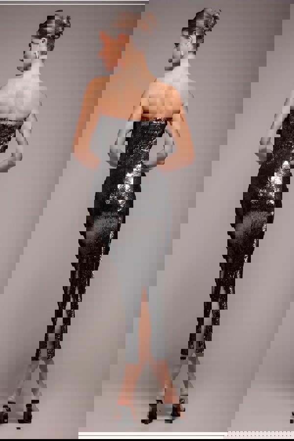 Dazzle and dance the night away with our Liquid Sequin Boobtube Midaxi Dress with Corsage.