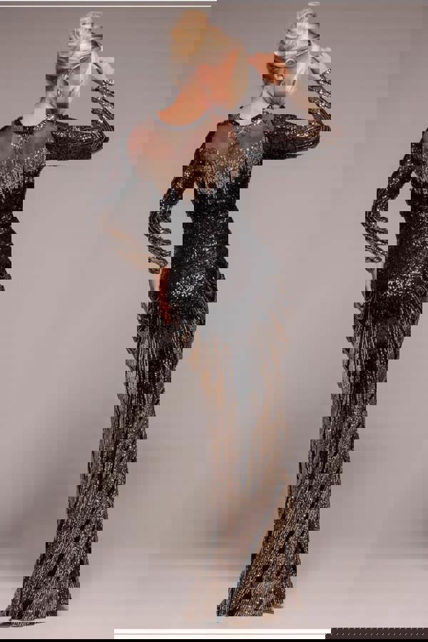 Adorned with intricate sequins, this gold occasion dress exudes glamour and style.
