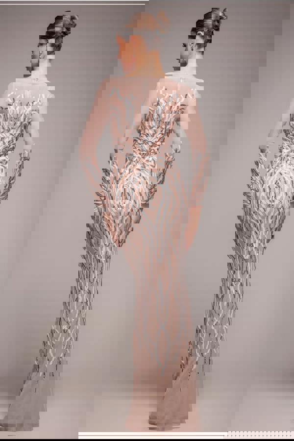With its delicate mesh and sparkling sequin embellishment, designed in a flame pattern, this dress is the hottest dress of the season! This sparkling number is a must-buy for your upcoming events this season; whether it be for a black tie event, prom, wedding or formal party, this is the only gown you need.