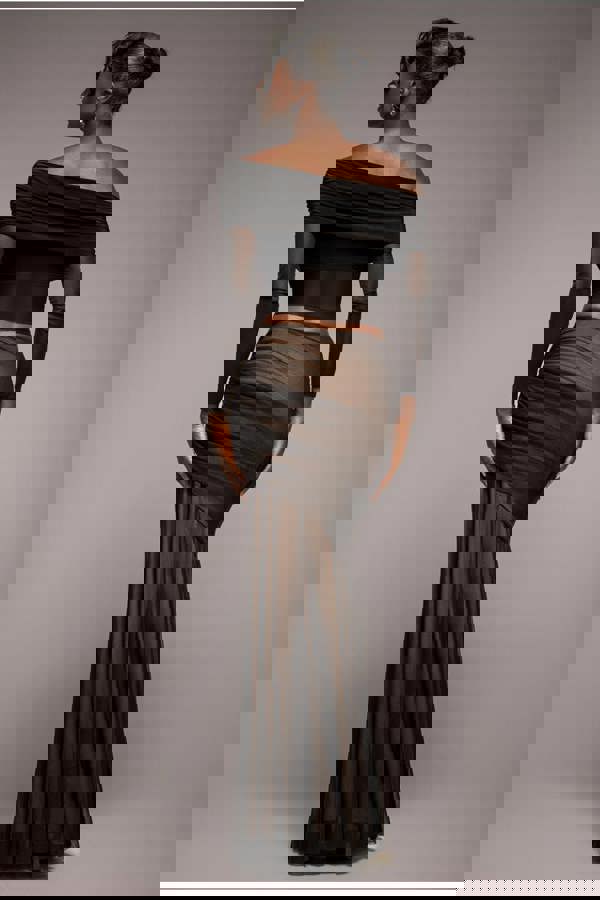 Effortlessly sultry and endlessly chic, the Goddiva Mesh Gathered Mermaid Maxi Skirt in Black is your go-to for nights out and glamorous events.