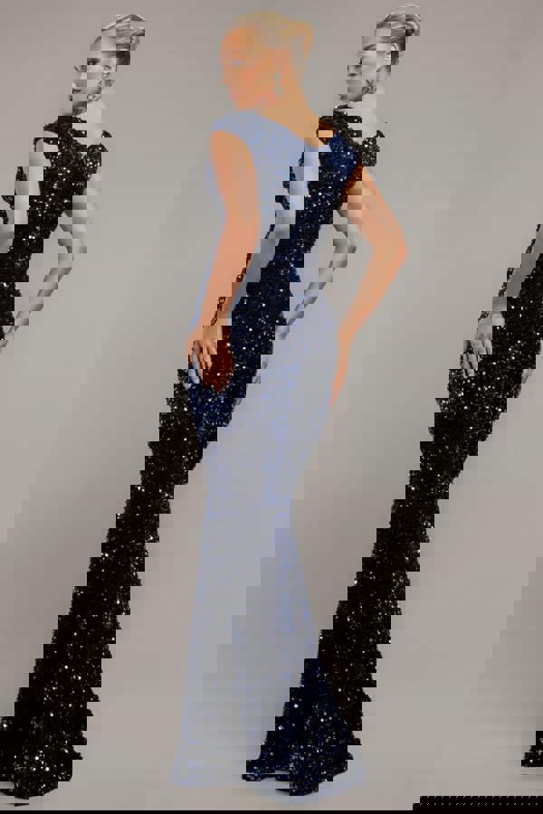 The rich navy blue hue, combined with shimmering sequins and velvet, creates an irresistible, luxurious look perfect for any special occasion.