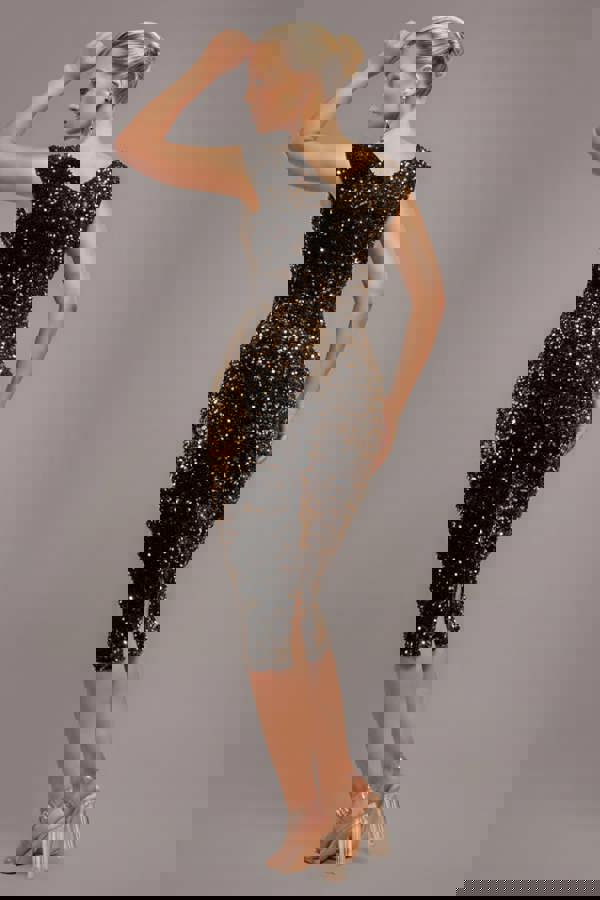 Get the perfect look for your next party night out, date night, semi formal occasion or for christmas and new years celebrations with our stunning gold sequin & velvet midi dress.