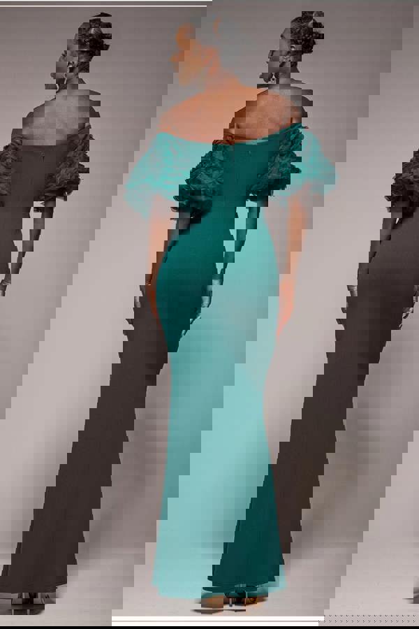 Step into irresistible glamour with the Goddiva Off The Shoulder 3D Puffed Sleeve Sweetheart Maxi Dress in stunning emerald green.
