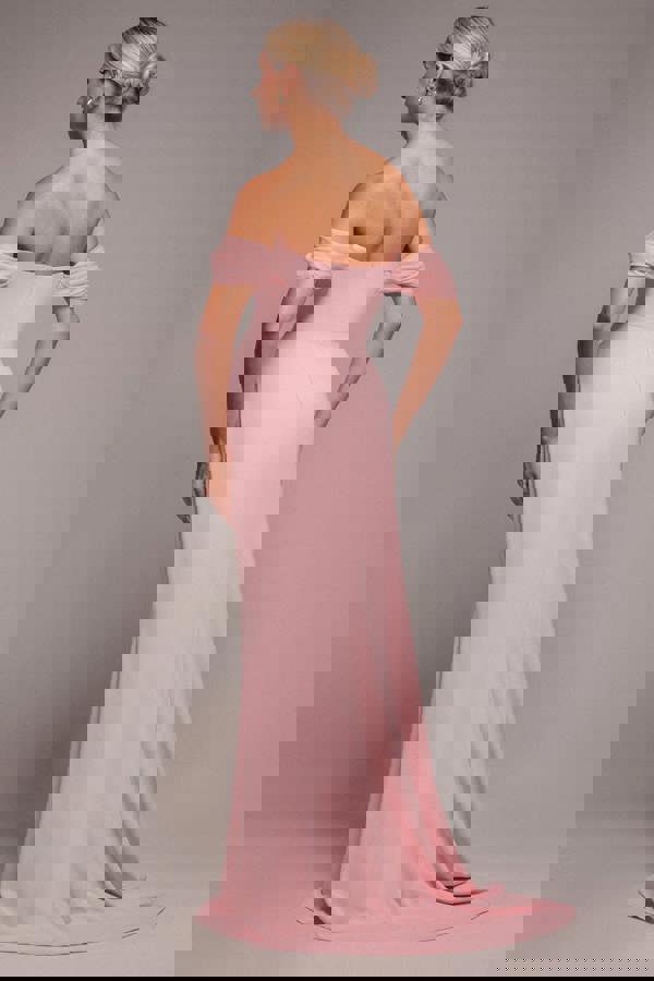 The Goddiva Off The Shoulder Draped Sleeve Maxi Dress in Blush Pink is the epitome of modern elegance and refined glamour.