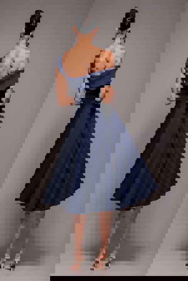 Perfect for weddings, race days, glamorous dinners and nights out, this navy blue midi dress offers an expensive look with an affordable price tag.