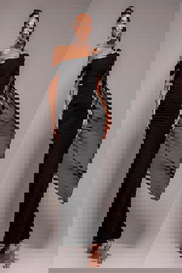 Sultry, sculpted and undeniably luxe, the Goddiva black one shoulder maxi dress is your go to for statement occasionwear with an expensive aesthetic at an affordable price.