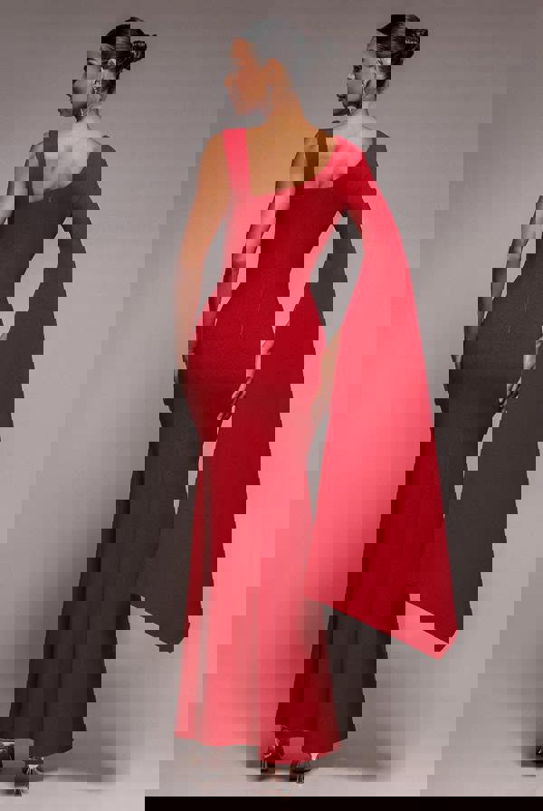 Red carpet ready in radiant red, the Goddiva One Shoulder Cape Sleeve Maxi Dress exudes glamour and sophistication.