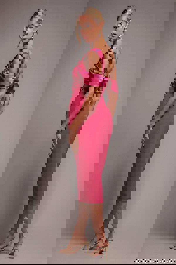 Exuding major girl crush vibes, this Pink one-shoulder dress is guaranteed to make you stand out from the crowd.