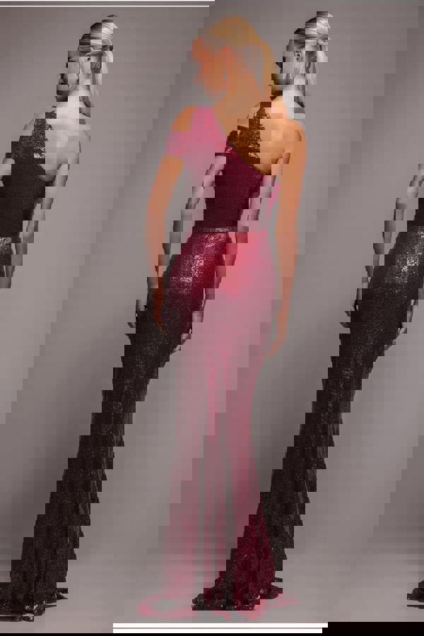 Don't settle for the ordinary – choose our One Shoulder Sequin Evening Maxi Dress for an extraordinary and unforgettable evening.