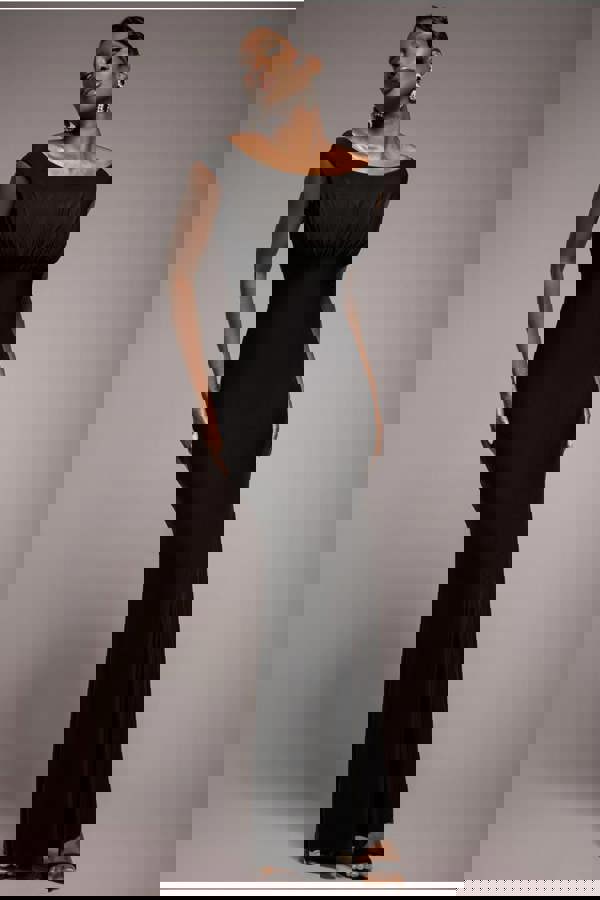 Available in rich black, this versatile maxi dress is ideal for dressing up or down, offering a high-end appearance without the designer price tag.