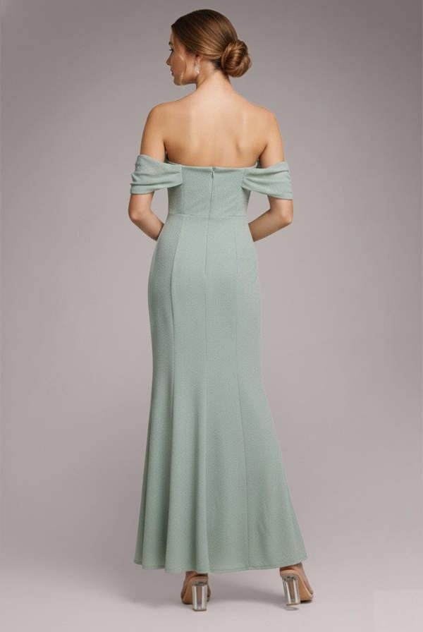 The delicate sage green hue exudes sophistication and versatility, perfect for weddings, cocktail parties, or glamorous evening events.
