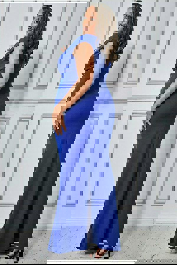Its bold blue colour and classic long length, not to mention its flattering, pleating detail, this occasion dress is one that will suit all.