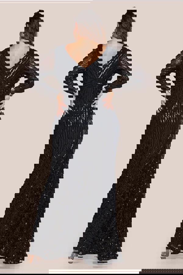 This curvy black long sleeve sequin maxi is the hit of the season!! This elegant plus size sequin maxi dress is a trendy, flattering style that will make you look and feel amazing at your next black tie event.
