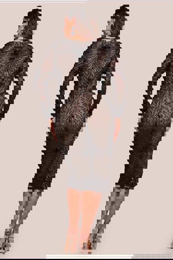 This art décor black number is ticking all the boxes this season, especially with its figure flattering bodycon style, this glamorous evening occasion dress will have you looking like the star you are.